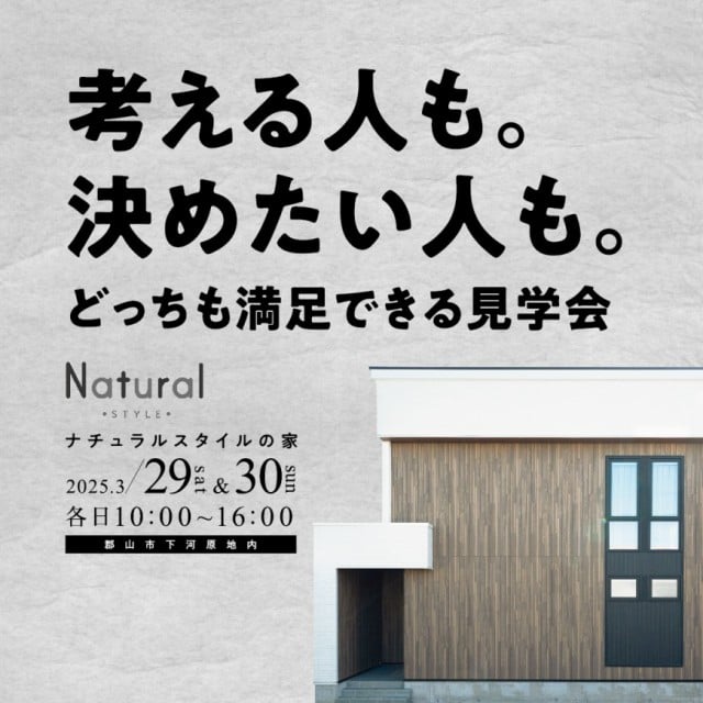 郡山市富久山町「考える人も。決めたい人も。どっちも満足できる見学会」は3月29日(土)・30日(日)の2日間限定です。