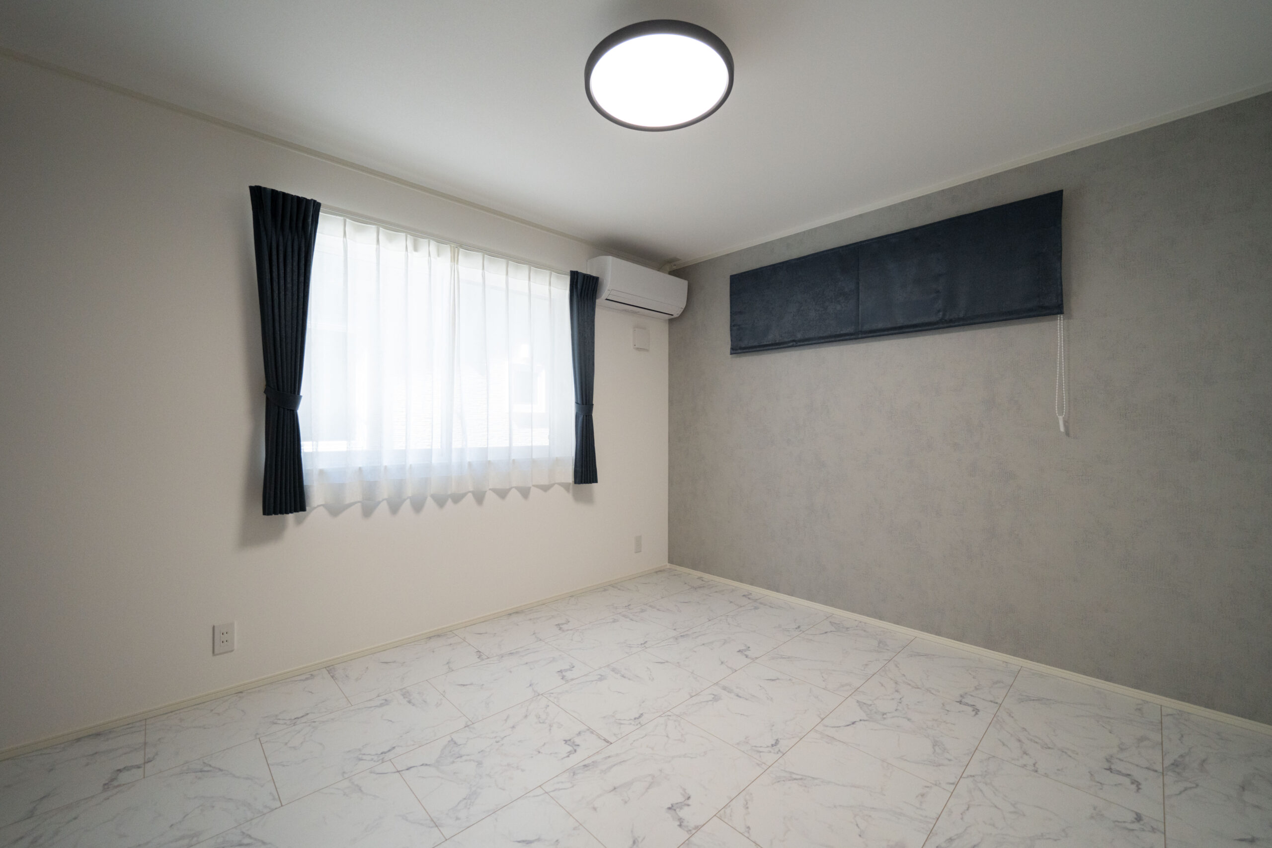 落ち着いたグレーのアクセントクロスが印象的な主寝室は、1日の疲れを癒す静かな空間。余計な装飾を排したシンプルなデザインが、ホテルライクな上質感を引き立てます。