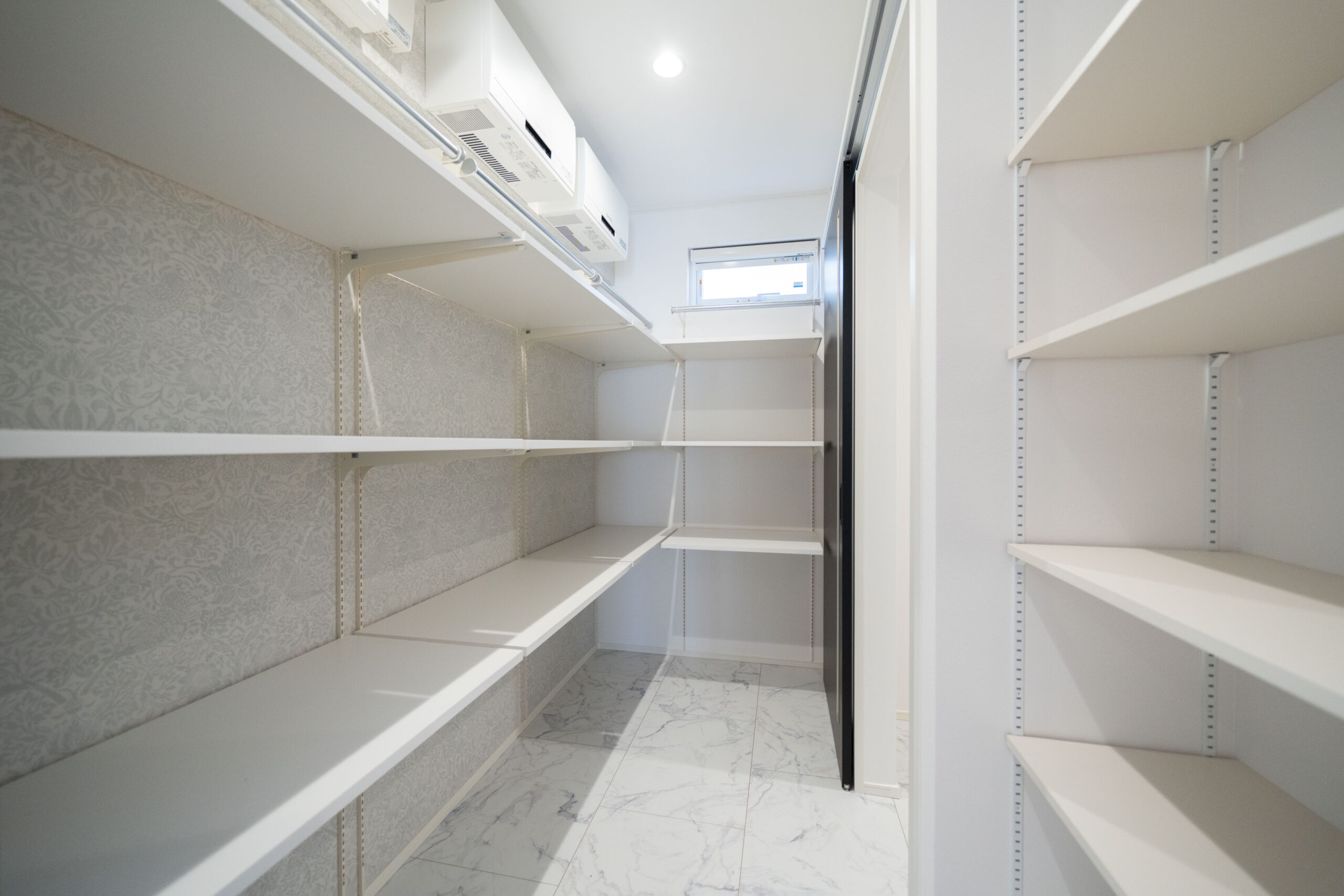 リビングからのアクセスもスムーズな回遊動線を確保。干した服をそのまま収納できるストレスフリーな動きが叶います。忙しい毎日に少しのゆとりをもたらしてくれる、家事ラク設計が魅力です。