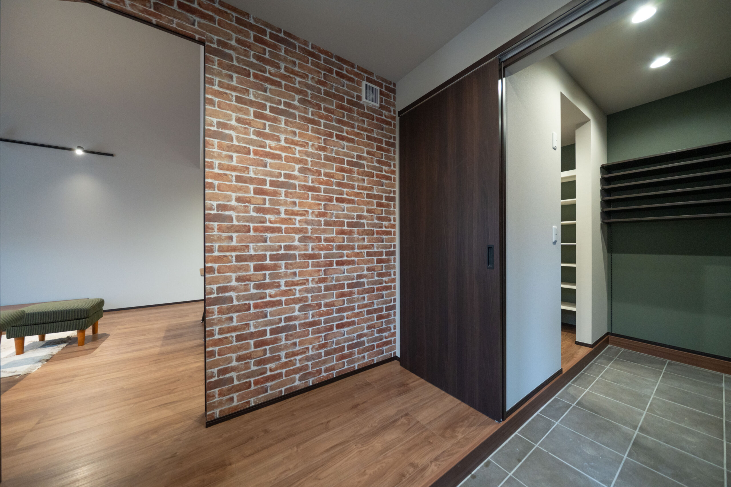 レンガ調の外壁や落ち着いた色合いのインテリアなど
