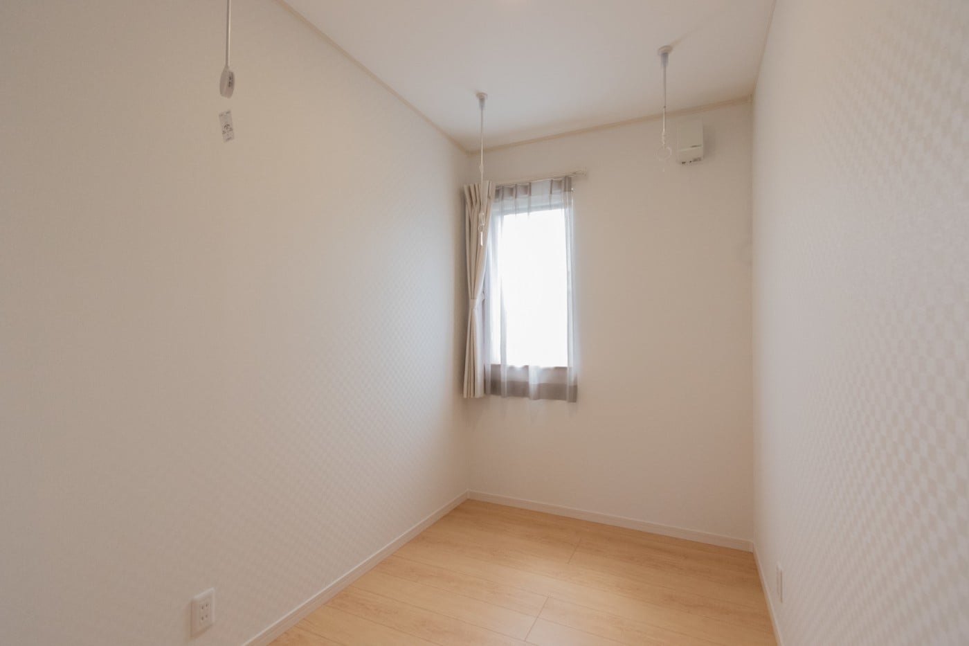 2階にはサンルームを設けました。窓と換気扇があるので、嫌な部屋干し臭を気にする心配はありません。また、室内に洗濯物を干せるので、天気や時間などに左右されず、家事効率もアップします!