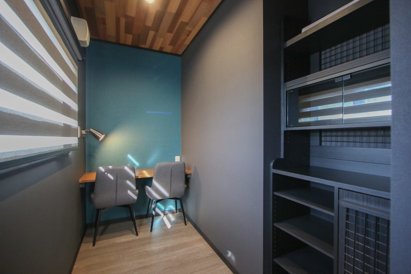 2階の主寝室には書斎を設けました。お仕事に集中したい時にはぴったりの空間です。書斎の中まで全体のテイストを意識したこだわりの詰まったお家です!