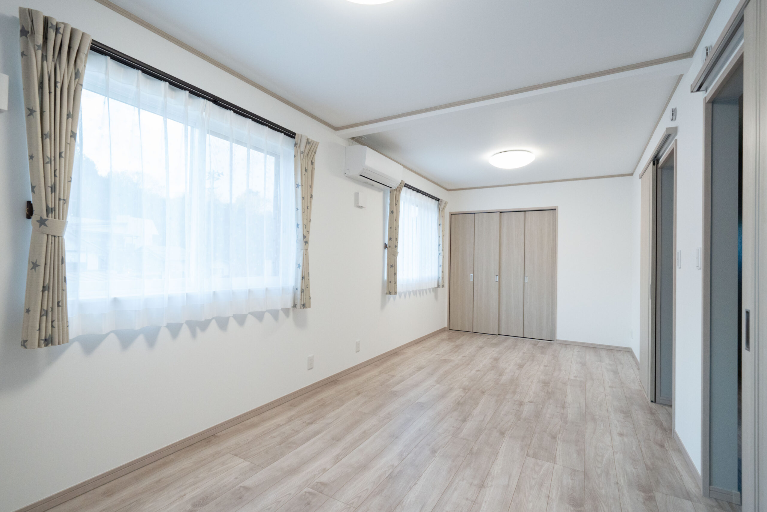 将来的に2部屋に仕切れるように設計された洋室。お子さまの成長やライフスタイルの変化に合わせて柔軟に対応できます。現在は広々とした1室として使用できるため、子ども部屋や趣味のスペース、ゲストルームとしても活用可能です。