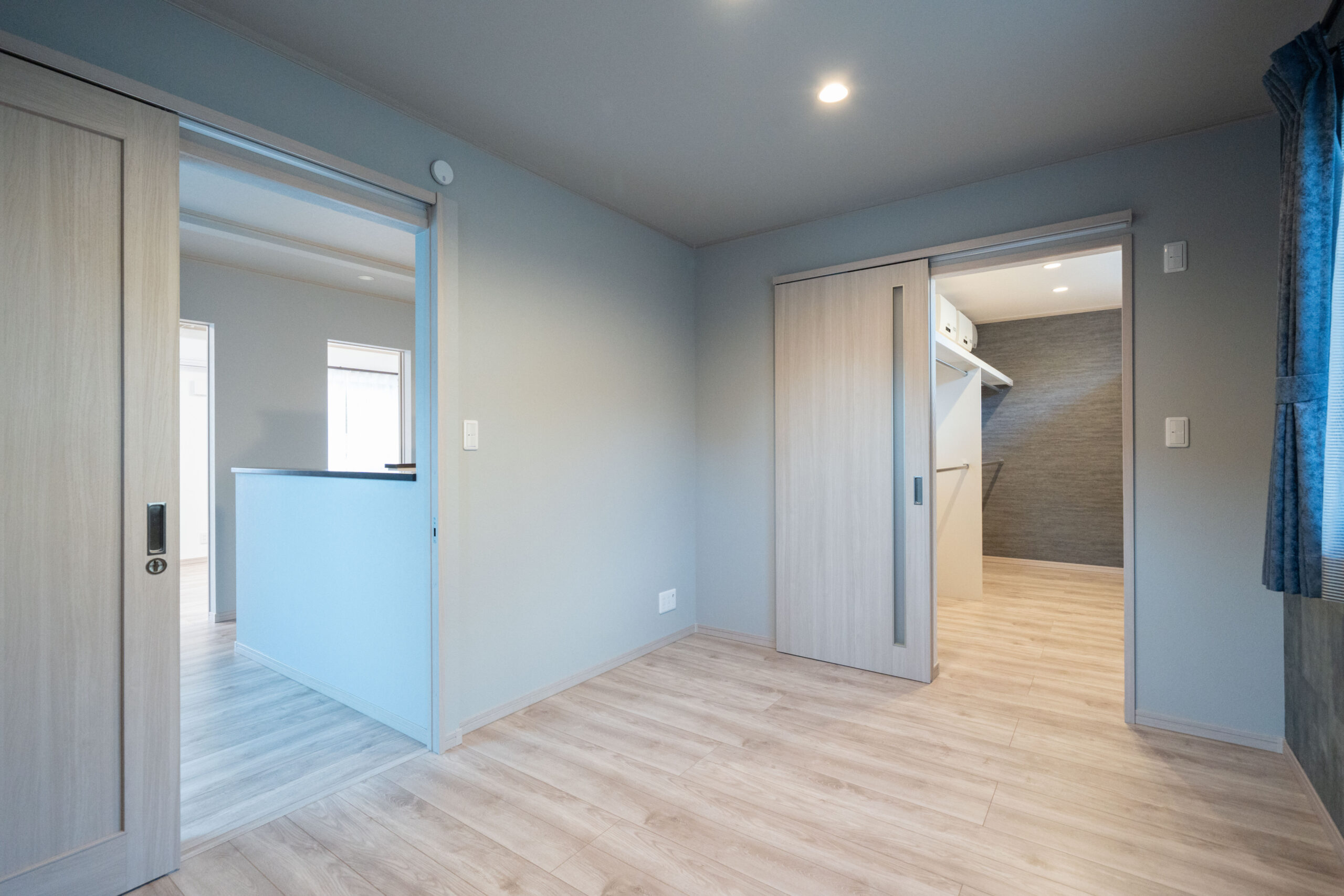 将来的に2部屋に仕切れるように設計された洋室。お子さまの成長やライフスタイルの変化に合わせて柔軟に対応できます。現在は広々とした1室として使用できるため、子ども部屋や趣味のスペース、ゲストルームとしても活用可能です。