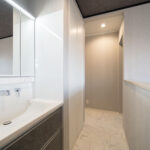 忙しい朝の時間帯でも家族みんなが気持ちよく身支度できるよう、2階ホールにも洗面スペースを設置。1階に集中しがちな水回り機能を分散させることで、暮らしの利便性が格段にアップします。ゲスト利用時にも重宝する、気配り設計の一つです。