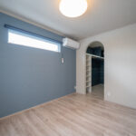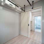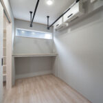 洗う・干す・たたむ・しまうが一箇所で完結するランドリールーム。天井にはハンギングバー、壁にはたたみ作業もできるカウンターを備え、家事の効率をぐっと高めてくれます。さらに、LDKから洗面スペースへとつながる回遊動線上に配置されているため、移動もスムーズでストレスフリーな家事動線が実現しています。