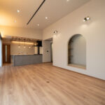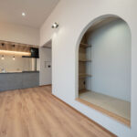 アーチ開口がかわいらしい、畳敷きのヌックスペース。ちょっと腰掛けて本を読んだり、リラックスした時間を過ごしたり。家族それぞれの “ちょうどいい居場所” として活躍してくれます。オープン棚付きでお気に入りの本や小物を飾るのにもぴったり。