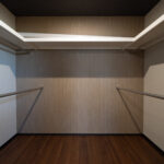 ベッドスペースを小上がりにし、間接照明を取り入れた主寝室は、まるでホテルのような上質な空間。就寝だけでなく、映画鑑賞やくつろぎ時間も楽しめるようにプロジェクターとスクリーンも設置。 “寝るだけじゃもったいない” を叶える贅沢な寝室です。