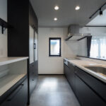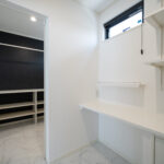 洗濯のためだけのスペースとして独立して設けられたランドリールームは、天気や時間を気にせず家事ができる便利な場所。隣接するカウンターでたたんで、そのままファミクロに置ける、そんな一連の家事効率を高めるレイアウトが完成しています。発想の空間創りと、家族思いの効率化に充ちた設計です。
