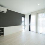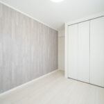 大きな窓からたっぷりの光が入り込む主寝室。とくに横に広がるドレープな空間は、布団を展開したままでもすっきり感を保てます。隣には小さな書籍やデスクを置ける書習コーナーもあり、休日のまったりした隙間時間やパソコンスペースとしても便利な場所になっています。
