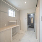 ランドリールームは、天気や時間を気にせずに洗濯ができる便利な空間。広さもあり、布団や衣類を広げてたたむことができるカウンター付き。そのまま隣にあるファミリークローゼットにしまえば、洗濯家事が一箇所で終わります。