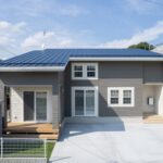 勾配の大きな屋根とラップ調の外壁が目を引く、カリフォルニアスタイルの爽やかな外観。2階建てでありながら、あえて片流れのフォルムを強調することで “平屋のような落ち着いた佇まい” を表現しています。どこから見てもバランスの良いデザインで、帰ってくるたびに気持ちがふっと軽くなるような優しい印象のお家です。