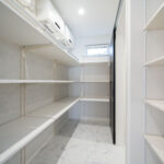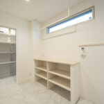 洗濯まわりの「洗う・干す・たたむ・しまう」が1ヵ所でできるランドリールームは、家事の時短に直結する人気の間取り。室内干しスペースと作業台があり、天候に左右されずに家事が進みます。すぐ隣には大容量のファミリークローゼットを配置し、乾いた衣類をそのまま収納できる動線を確保。リビング〜ファミクロ〜ランドリールームがぐるっとつながる回遊動線で、忙しい日もストレスなく動けるのが魅力です。