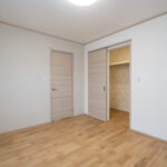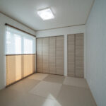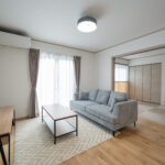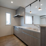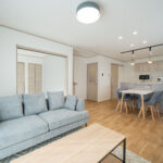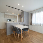 木目の温もりにグレーをアクセントとして取り入れた、やさしいノルディックテイストのLDK。リビング・ダイニング・キッチンが一直線に並んだ配置は、家族同士のコミュニケーションが取りやすく、日々の暮らしがよりスムーズになります。リビングに隣接した和室は、お子さまの遊び場にも、急な来客時のゲストルームにも活躍してくれる心強い空間です。