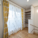 2階ホールに設けた室内物干しスペースは、天気に左右されず快適に洗濯物を干せる便利な場所。日当たりも良く、来客時にも視線を気にせず干せるため、忙しい子育て世帯にとって心強いスペースです。