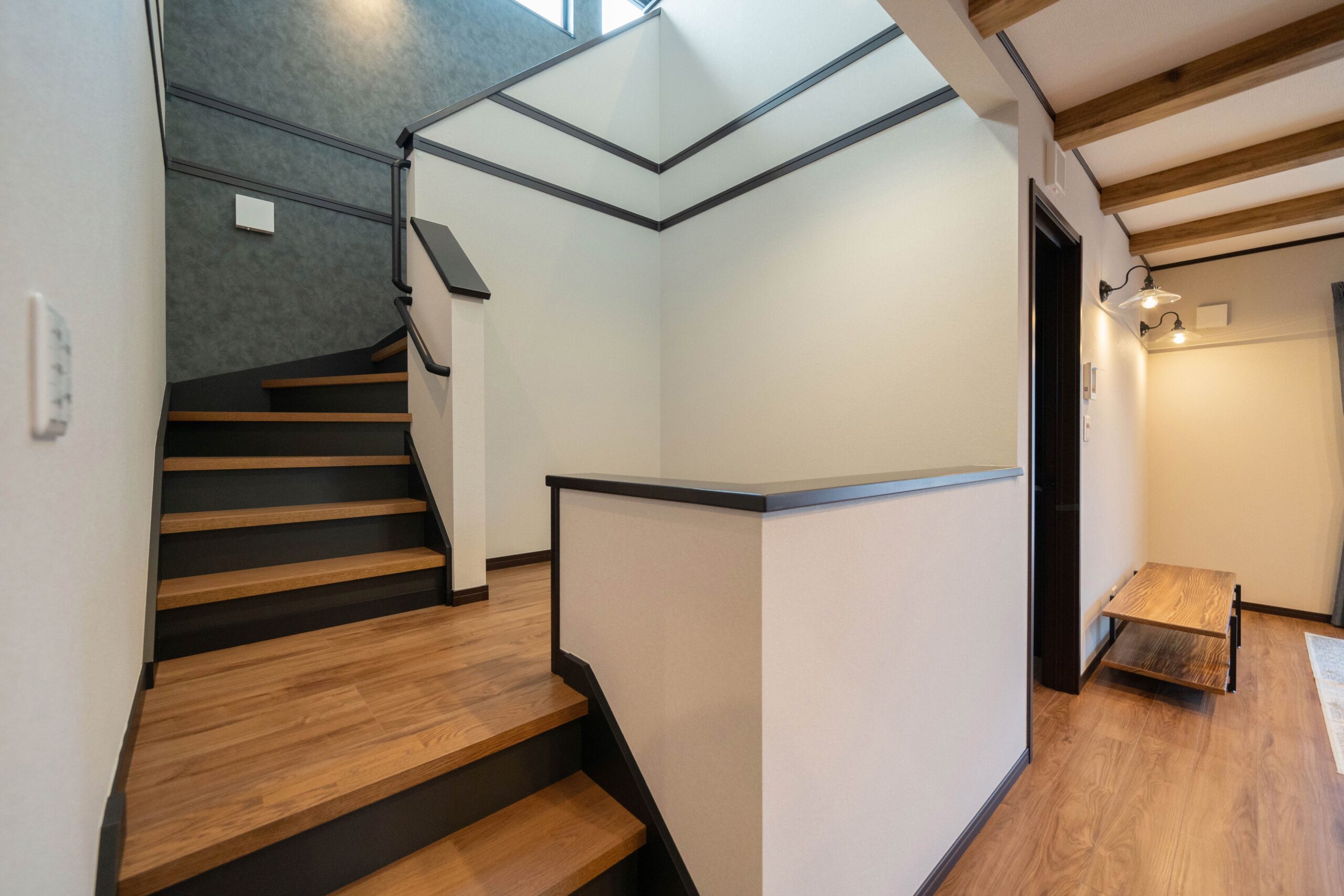 階段途中にスキップフロアを設け、視線と生活動線が自然につながる設計に。リビングとほどよく距離があるため、集中したい作業や趣味スペースとして使えるのが嬉しいポイント。家族の気配は感じつつ、自分の時間も大切にできる空間です。