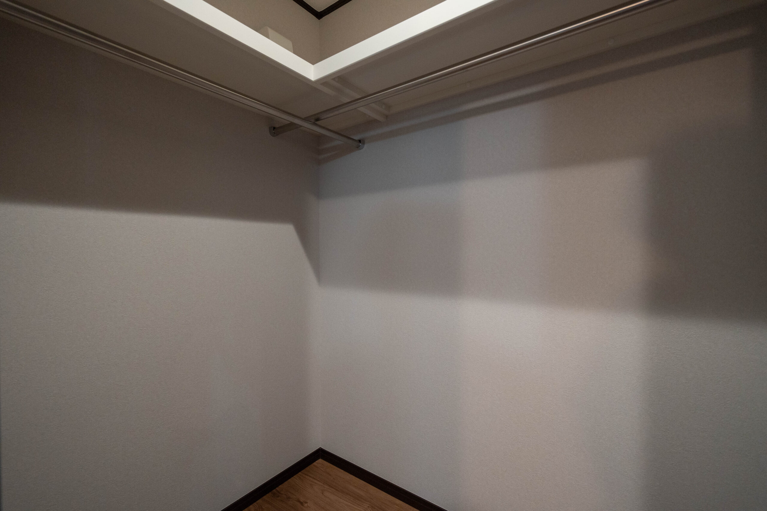 「洗う・干す・たたむ・しまう」が一か所で完結する家事ラク動線のランドリールーム。広めのカウンターや可動棚を備えており、作業効率がぐっと高まります。さらに、ファミリークローゼットが隣接しているので、乾いた衣類をそのまま収納できるスムーズさも魅力です。