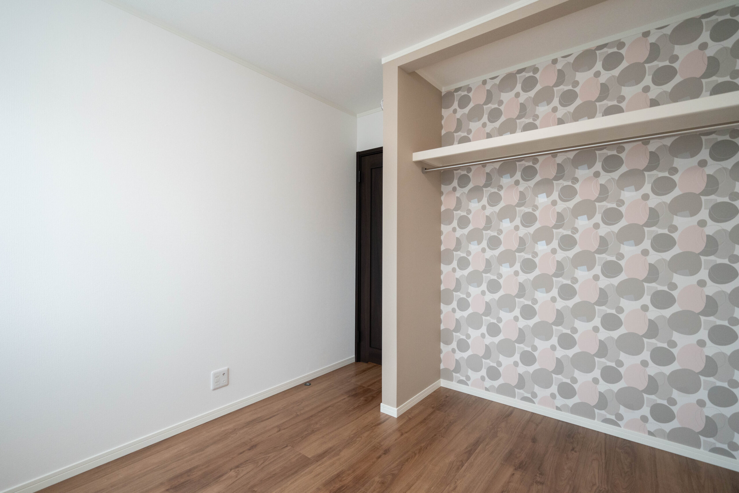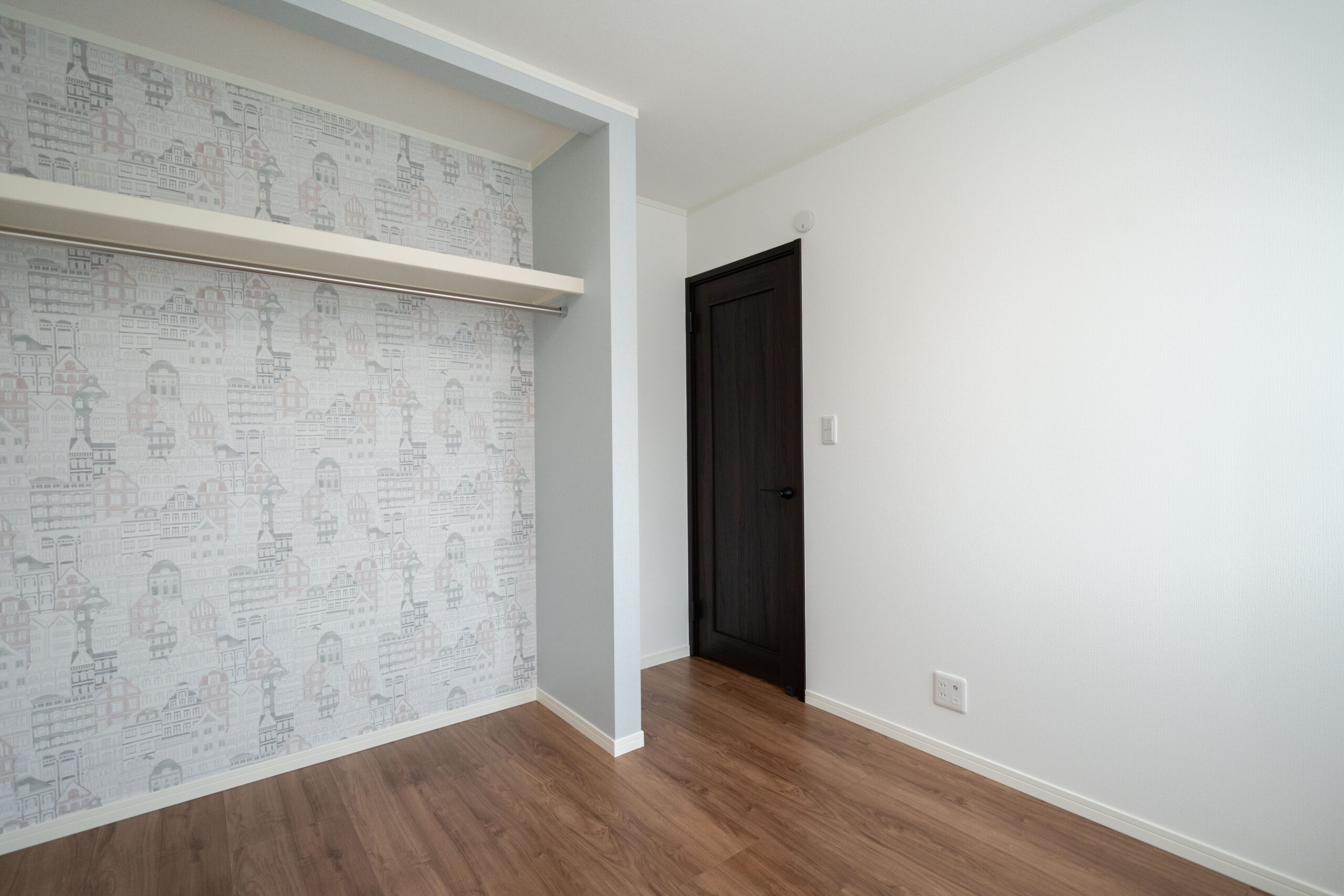 リビングに隣接した和室は、落ち着いた色味の畳と木目天井が印象的。キッチンのすぐそばに配置されているため、料理をしながら子どもの様子を見守ることもできます。来客時の予備室や、子どものお昼寝スペースとしても活躍する万能な一室です。