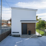 白を基調とした片流れ屋根の外観は、すっきりとしたシルエットが魅力のナチュラルスタイル。玄関まわりには木目を取り入れることで、やわらかな温かみとデザイン性を両立しています。シンプルでありながらもどこか印象に残る佇まいで、毎日帰るのが楽しみになるような心地よい外観に仕上がっています。