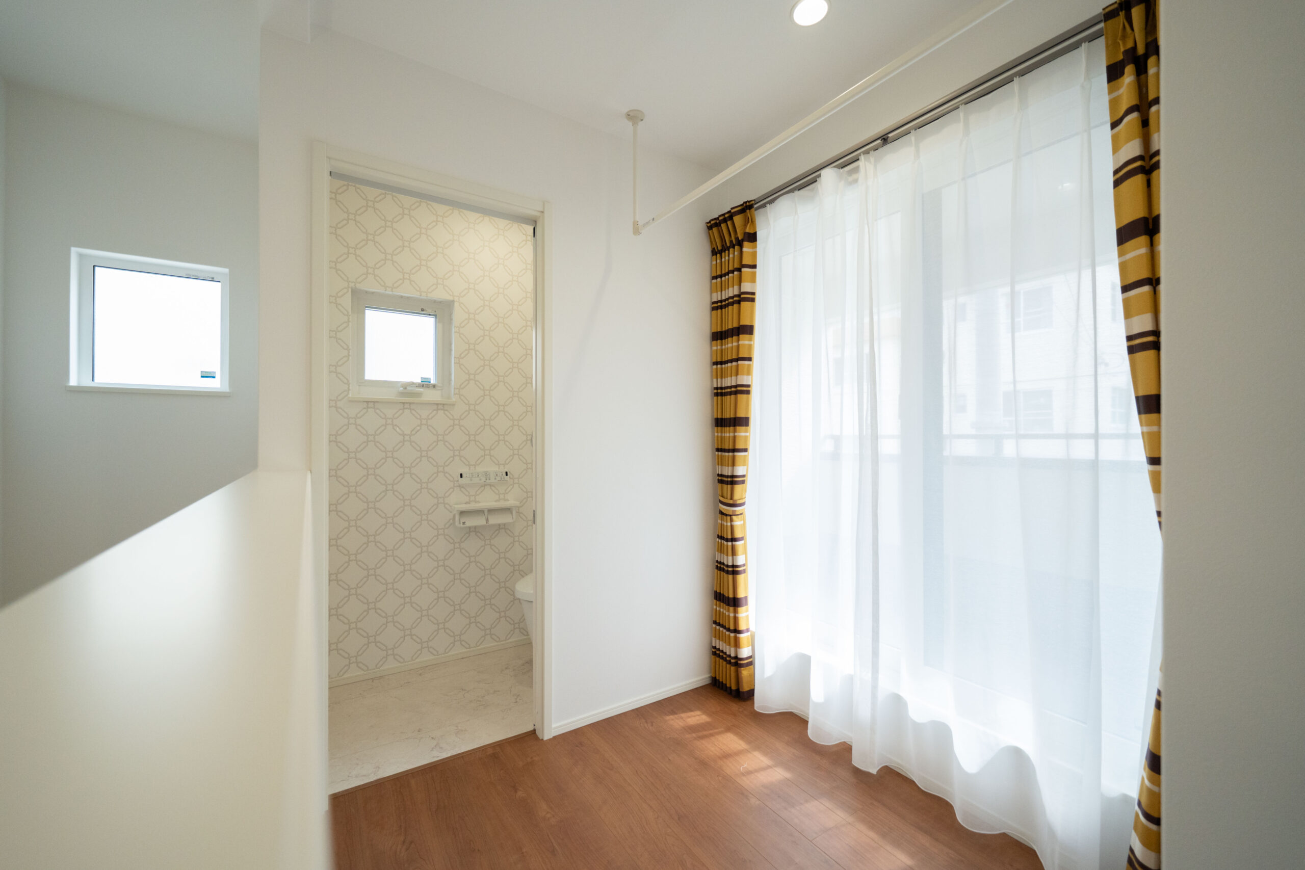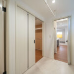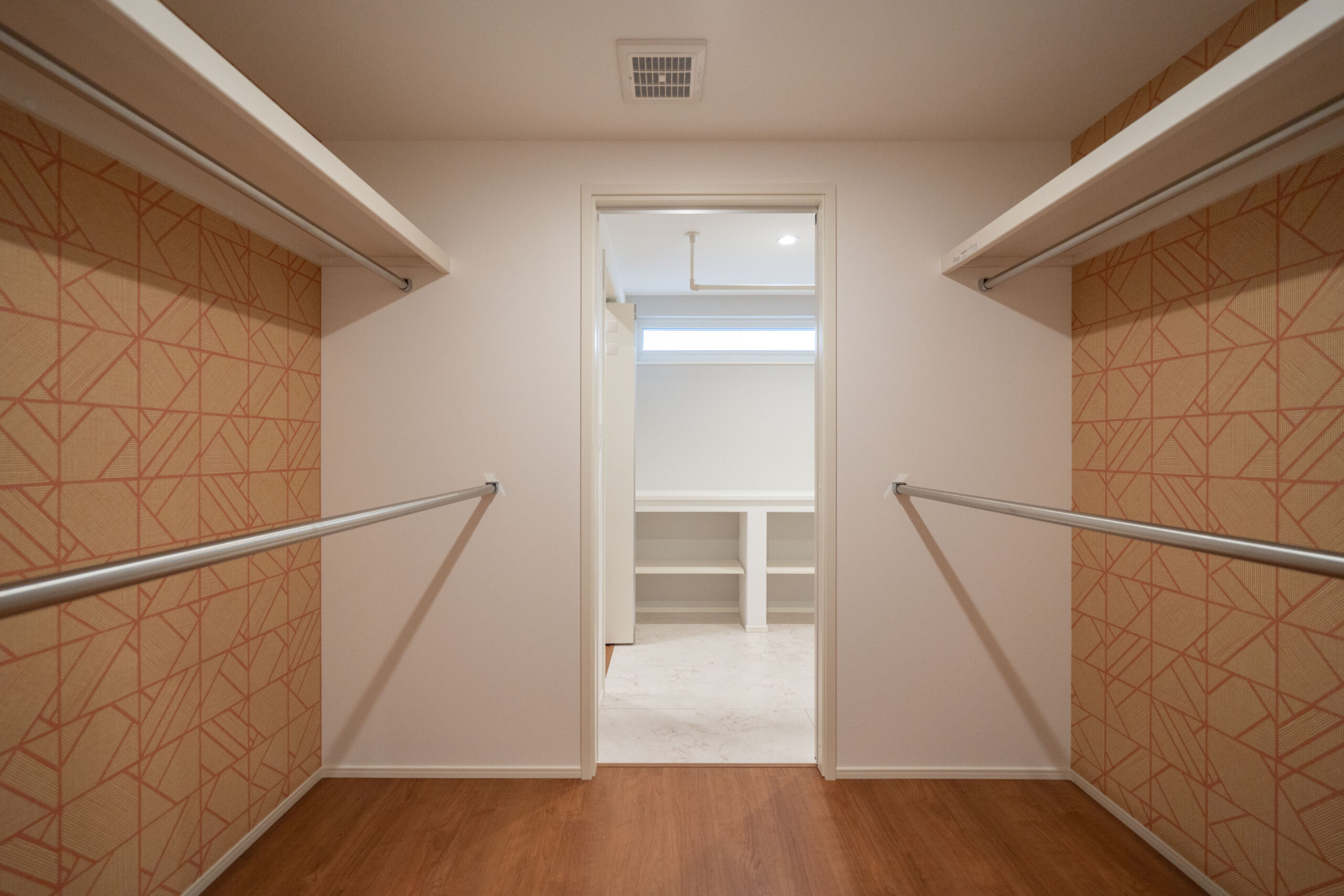 「洗う・干す・たたむ・しまう」が一つの空間で完結するランドリールームは、忙しい日々をサポートしてくれる便利な家事室です。隣にはファミリークローゼットを設け、乾いた洗濯物をそのまま収納できる最短動線を確保。さらに、LDK〜ランドリールーム〜ファミリークローゼット〜玄関がつながる2つの回遊動線により、家のどこからでもスムーズに移動できるストレスのない間取りを実現しています。