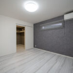 内観はホテルライクをテーマに、モノトーンで統一した大人の空間。グレーやブラックをバランスよく配色することで、落ち着きと高級感を両立させています。照明計画にもこだわり、明るさの中にも陰影が生まれることで、より洗練された雰囲気に。家具やインテリアも馴染みやすく、上質な暮らしを心地よく楽しめるLDKです。