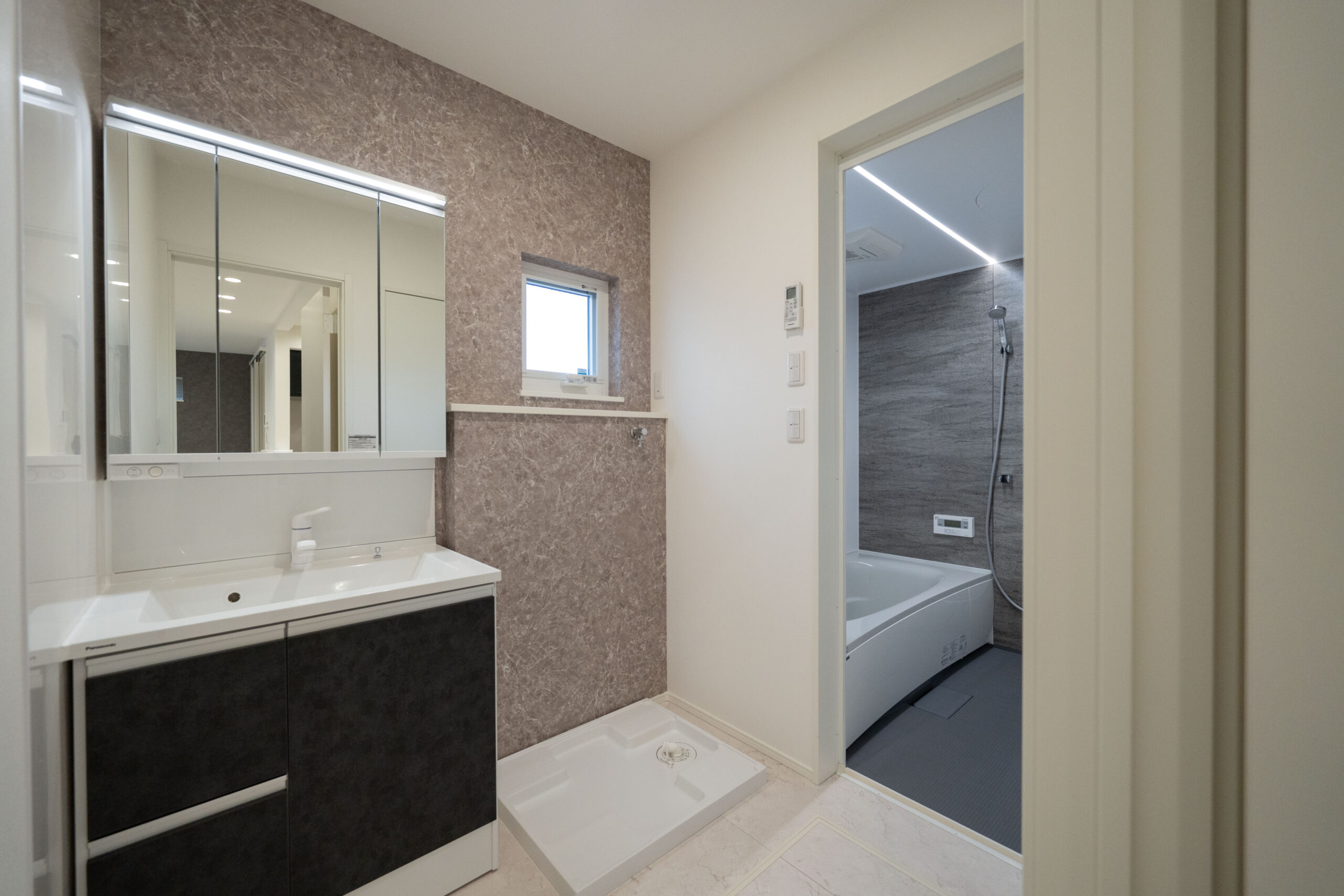2階ホールに設けた室内物干しスペースは、来客時でも気兼ねなく使える便利なスペース。洗濯物が乾いたら、そのまま各自の部屋へ持ち帰れるため、家事の分担や時短にもつながります。天候を気にせず洗濯でき、生活リズムに合わせて柔軟に使えるのも嬉しいポイント。毎日の家事がぐっと快適になる設計です。