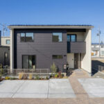 前面に金属製サイディングを採用した外観は、シャープさと重厚感を感じさせるデザインに。そこにベージュカラーを組み合わせることで、無機質になりすぎず、やわらかな温かみをプラスしています。異素材のコントラストがほどよいバランスを生み出し、スタイリッシュさと親しみやすさを兼ね備えたデザインに仕上がっています。