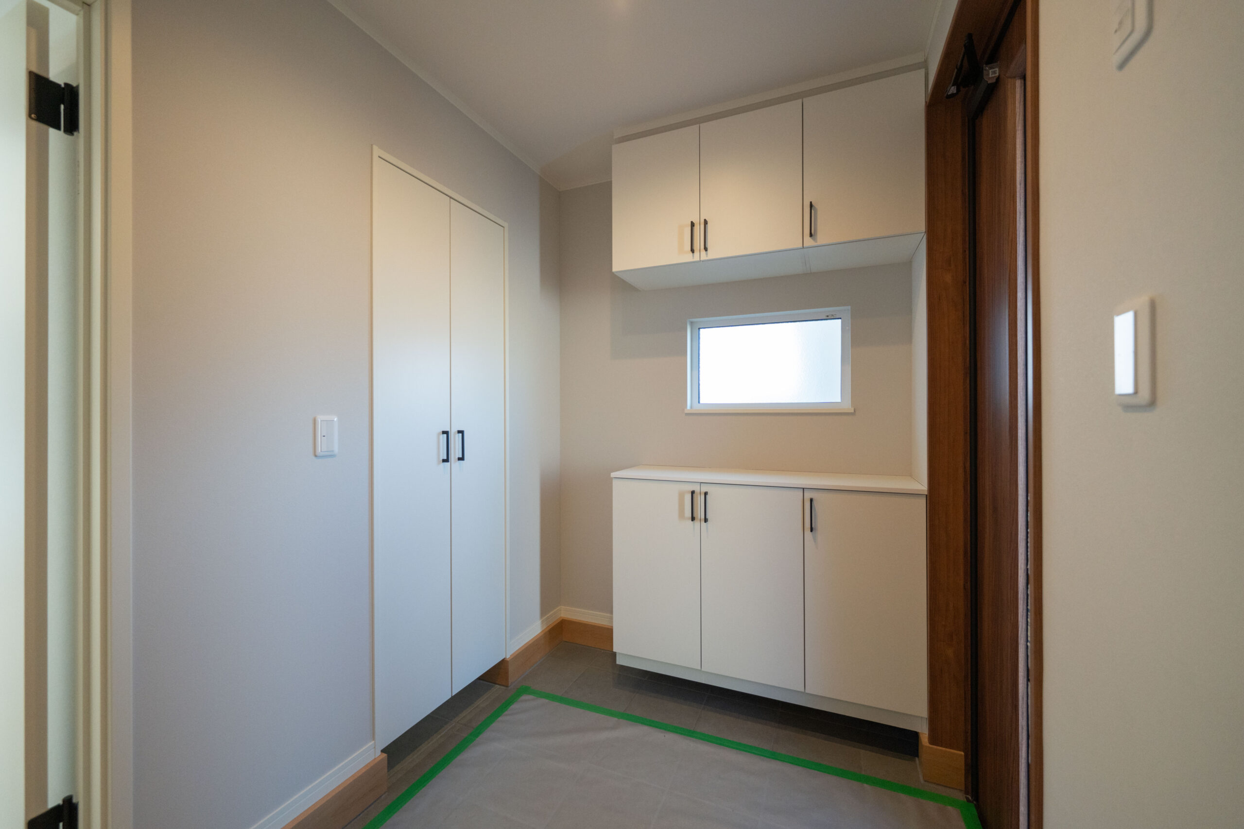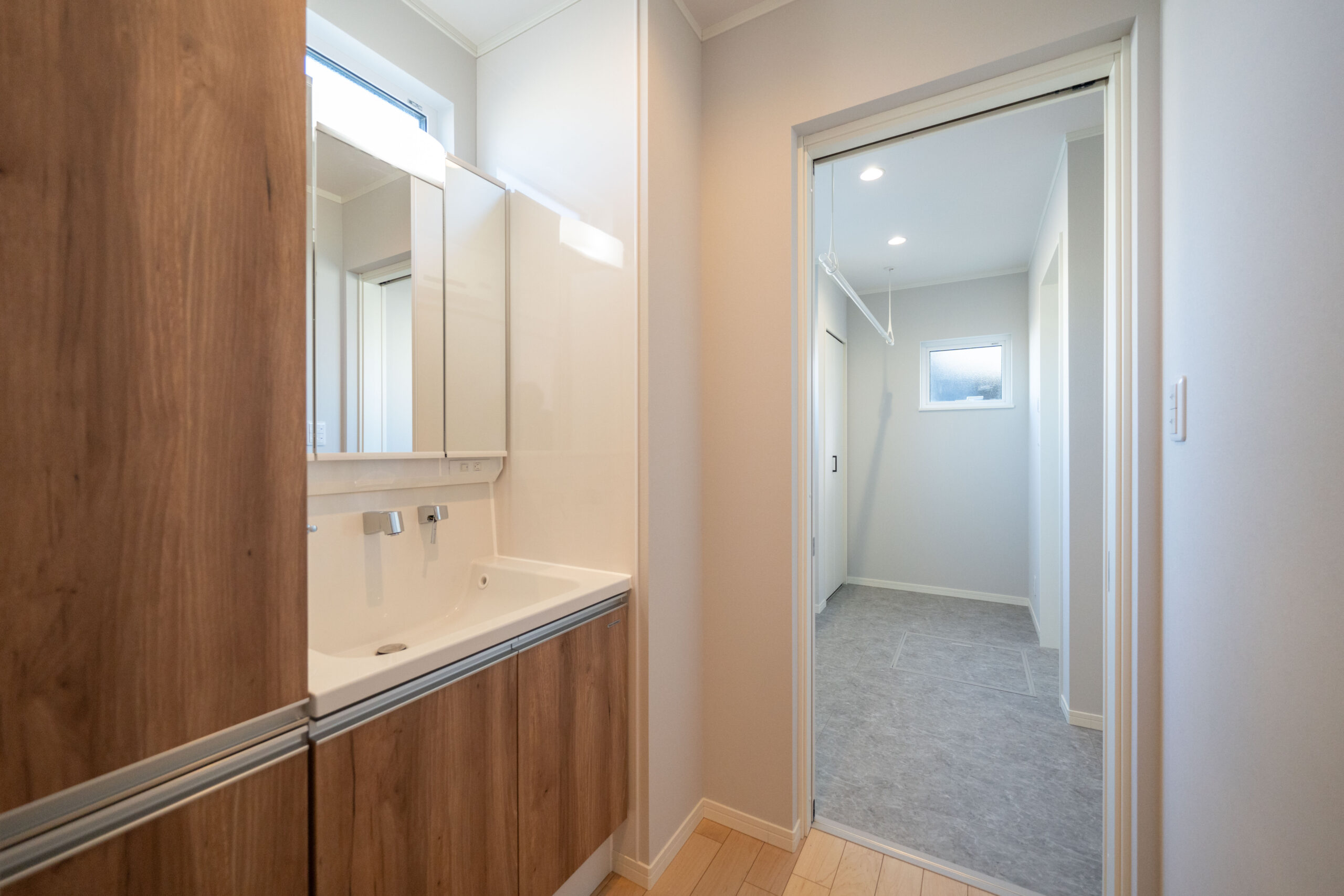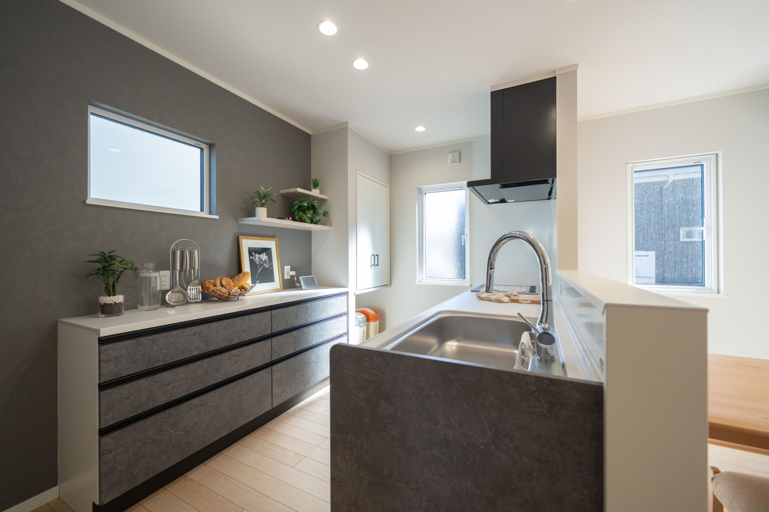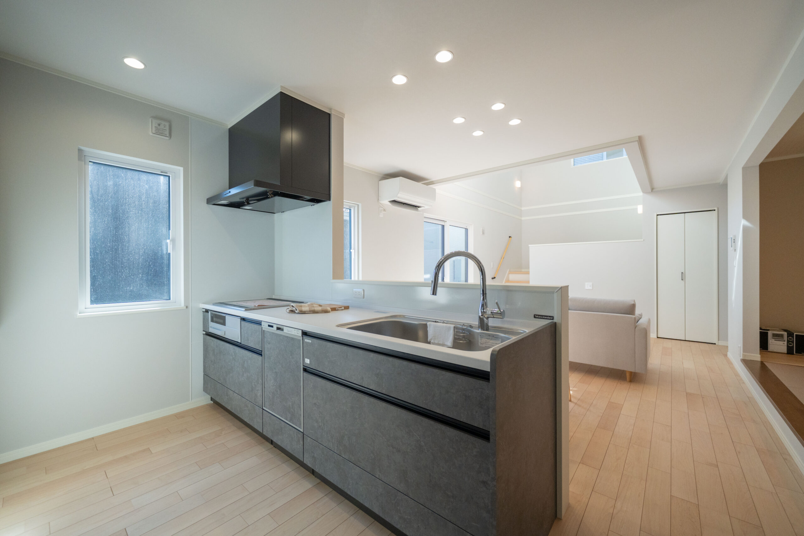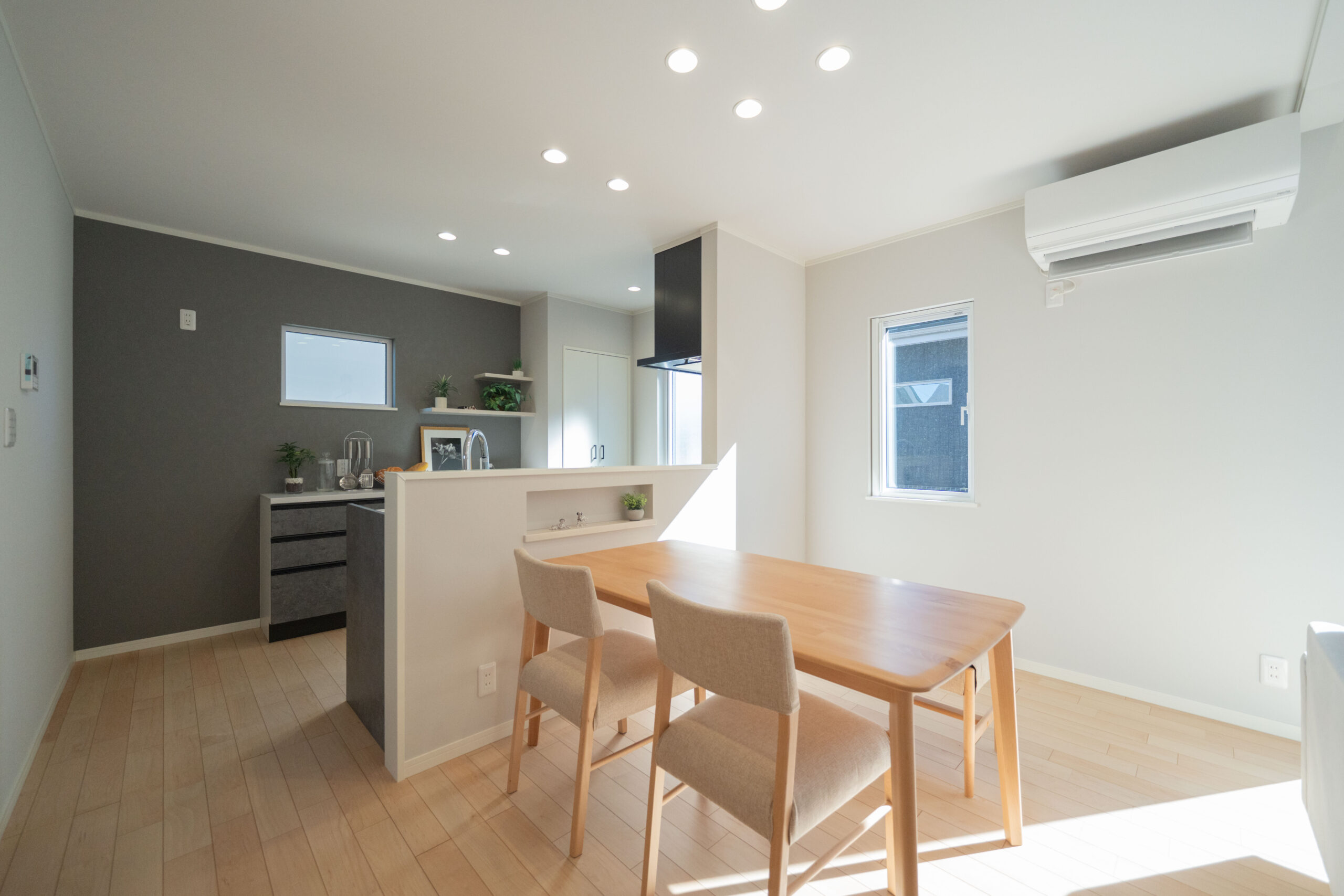 設備北方型高気密・高断熱住宅仕様/ ペアガラス樹脂サッシ/ 20年間地盤保証付き/ 食器棚/ 食器洗い乾燥機/ IHクッキングヒーター/ 高性能エアコン2台/ 浴室乾燥機/ 各居室LED照明/ 網戸/ 玄関電子キー/ 太陽光発電8.80kW/ 家具付き/ 外構工事